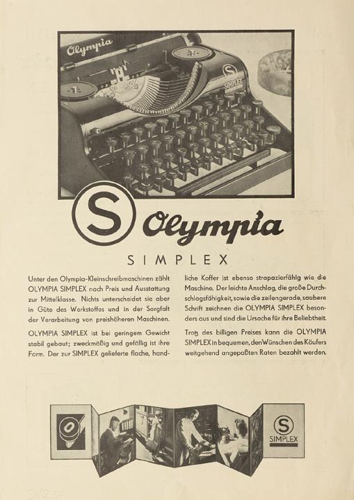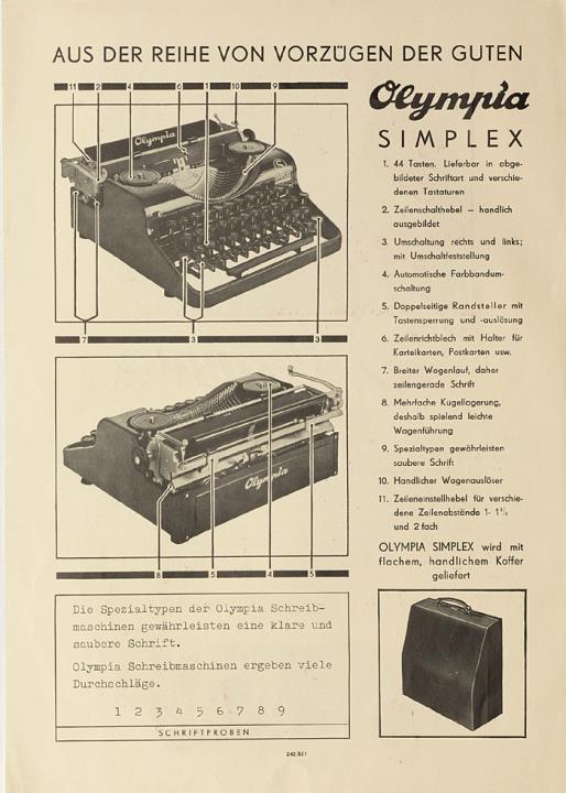 Prospekt für Schreibmaschine Olympia Simplex Nr. 242/BJ1