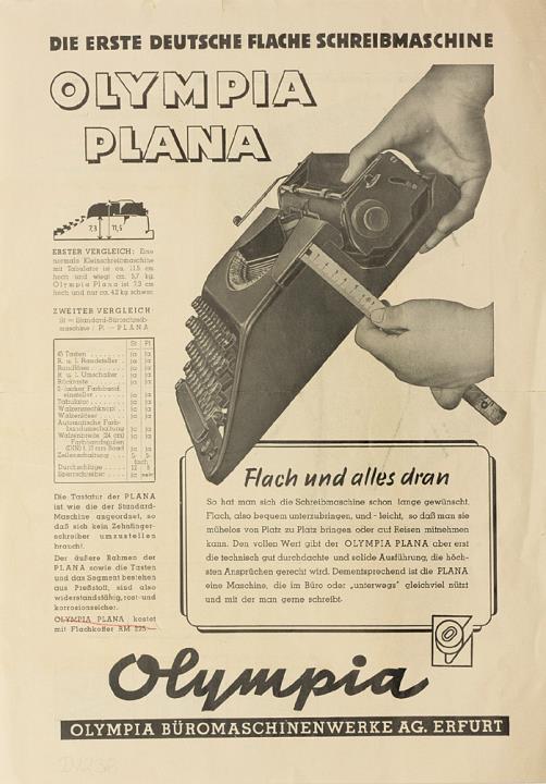 Prospekt für Schreibmaschine Olympia Plana Die erste deutsche flache Schreibmaschine Nr. 510 543