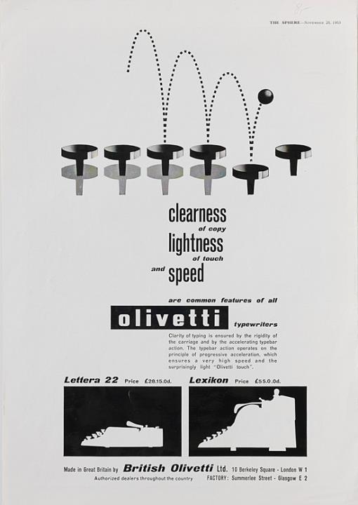 Werbeanzeige für Schreibmaschine Olivetti Lettera 22 und Lexikon monochrom