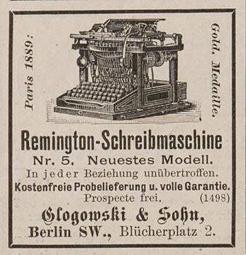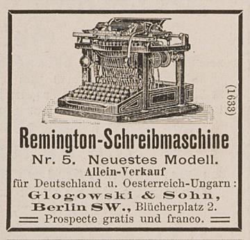 Zeitungsblatt (Illustrirte Zeitung) mit Werbeanzeige für Schreibmaschine Remington 5 monochrom