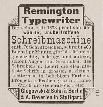 Zeitungsblatt (Illustrirte Zeitung) mit Werbeanzeige für Schreibmaschine Remington monochrom