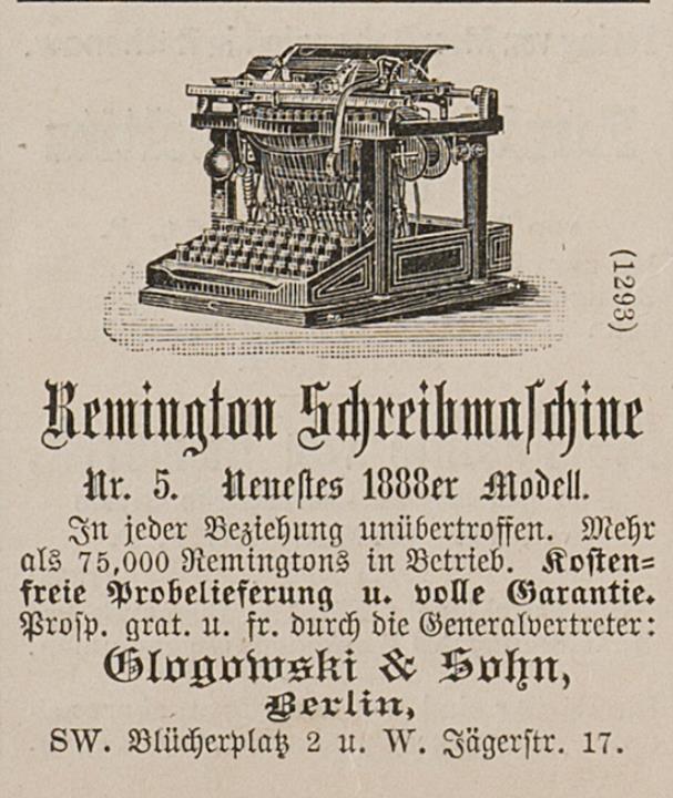 Zeitungsblatt (Illustrirte Zeitung) mit Werbeanzeige für Schreibmaschine Remington 5 monochrom