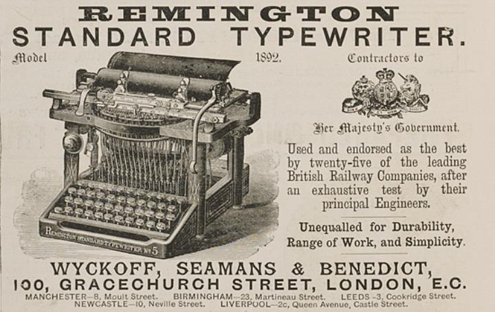 Zeitungsblatt (The Graphic) mit Werbeanzeige für Schreibmaschine Remington 5 monochrom