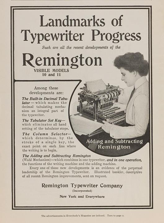 Werbeanzeige für Schreibmaschine Remington 10 und 11 monochrom