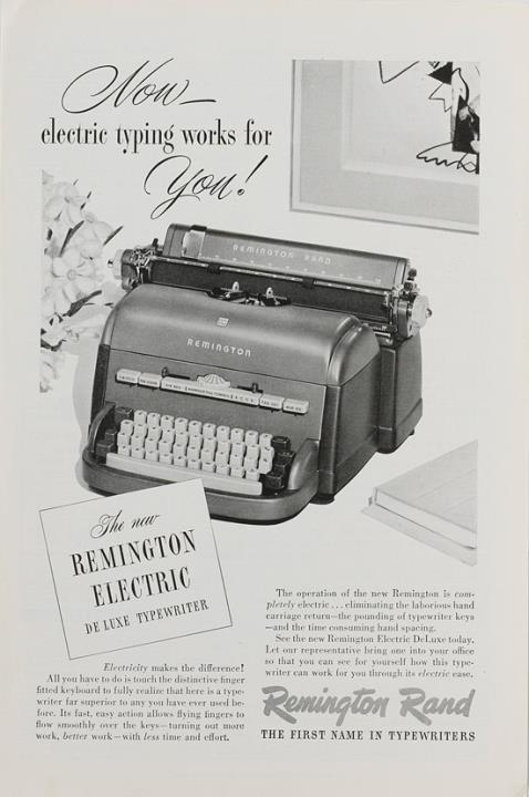 Werbeanzeige für Schreibmaschine Remington Electric DeLuxe monochrom