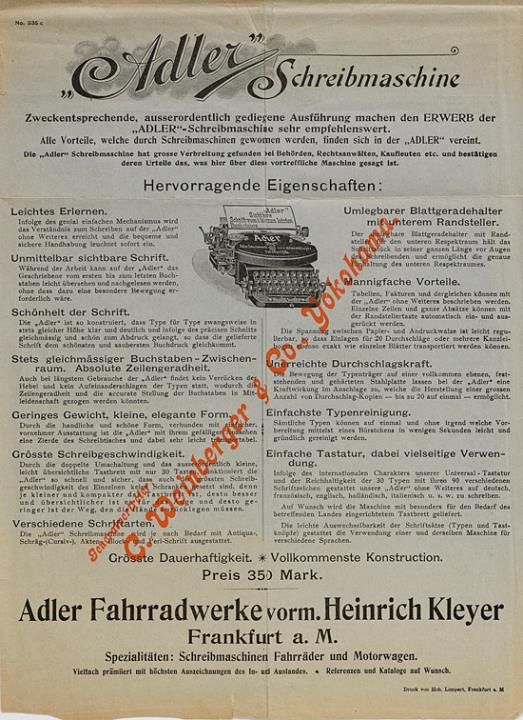 Adler Schreibmaschine [...] Hervorragende Eigenschaften