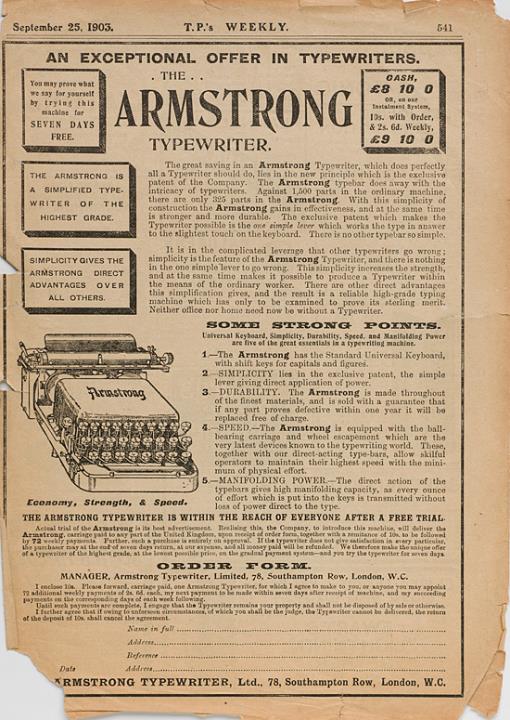 An exceptional offer in Typewriters. The Armstrong Typewriter