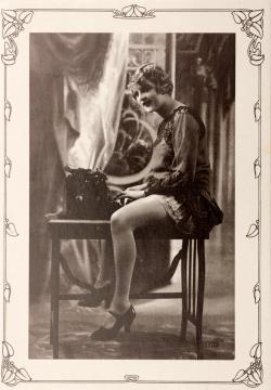 Illustrierte Postkarte; Fotografie, Nachdruck; monochrom Playgirl-Postkartenbuch Bild 25 Rückseite: Frau mit Schreibmaschine Vorderseite nicht beschrieben