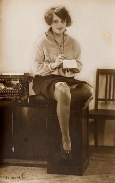 Illustrierte Postkarte; Fotografie, monochrom; Serie C 126 Rückseite: Sekretärin mit Notizblock und Schreibmaschine Vorderseite nicht beschrieben