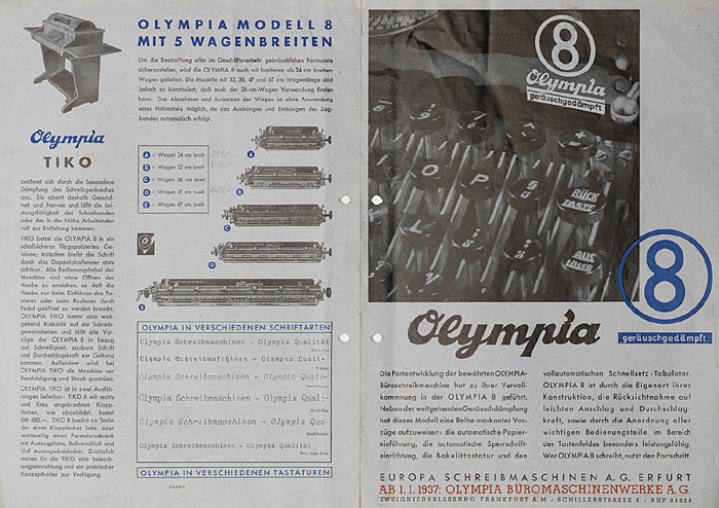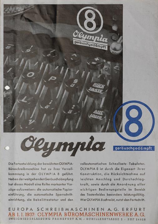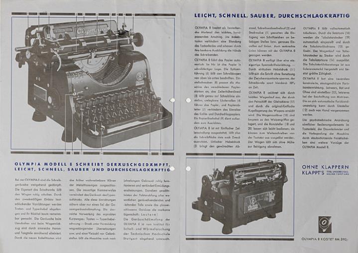 Prospekt für Schreibmaschine Olympia 8 Nr. 272/BB9