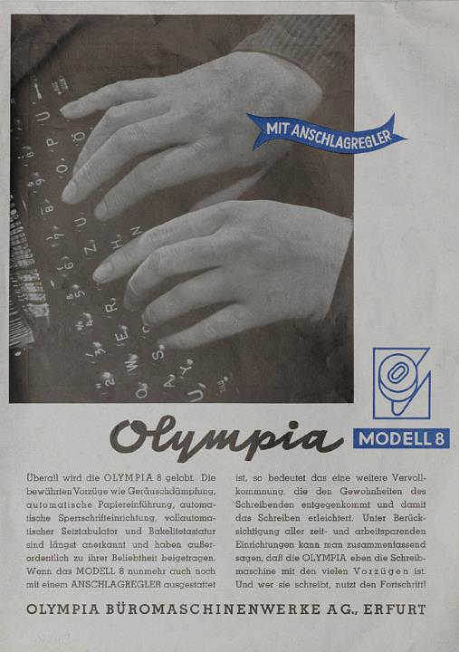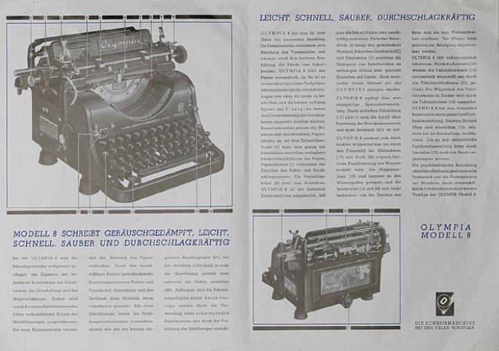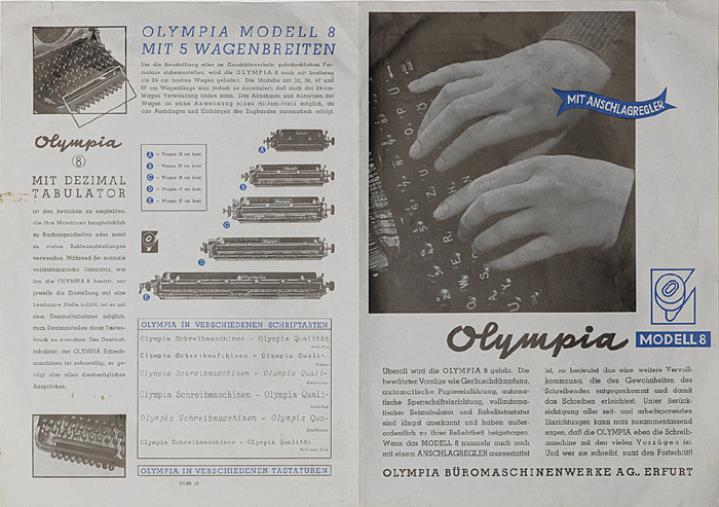 Faltprospekt für Schreibmaschine Olympia 8 mit Anschlagregler Nr. 27I/BB 1/2