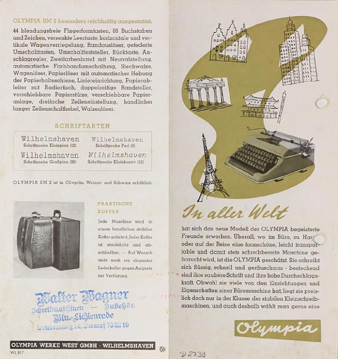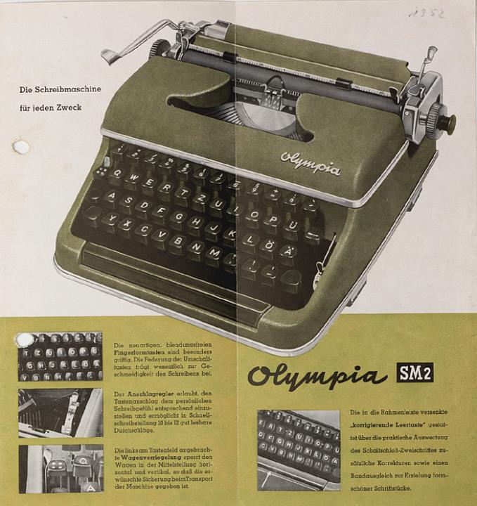 Faltprospekt für Schreibmaschine Olympia SM 2 Nr. WL 817