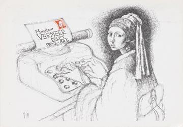 Illustrierte Postkarte; Grafik, polychrom; Nr. 16 einer Serie von Postkarten zur Ausstellung "Carte Postale et Dessin d'Humor" (Postmuseum Paris, Januar 1988) Vorderseite nicht beschrieben