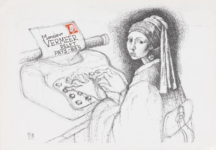 Illustrierte Postkarte; Grafik, polychrom; Nr. 16 einer Serie von Postkarten zur Ausstellung "Carte Postale et Dessin d'Humor" (Postmuseum Paris, Januar 1988) Vorderseite nicht beschrieben