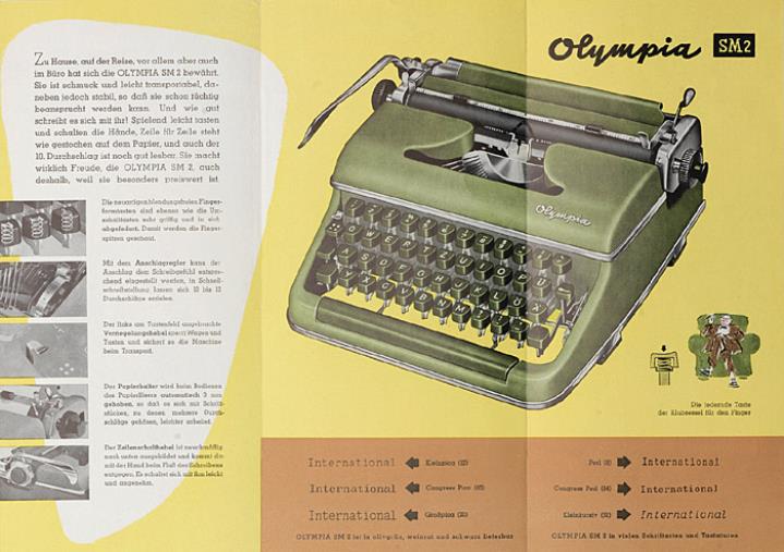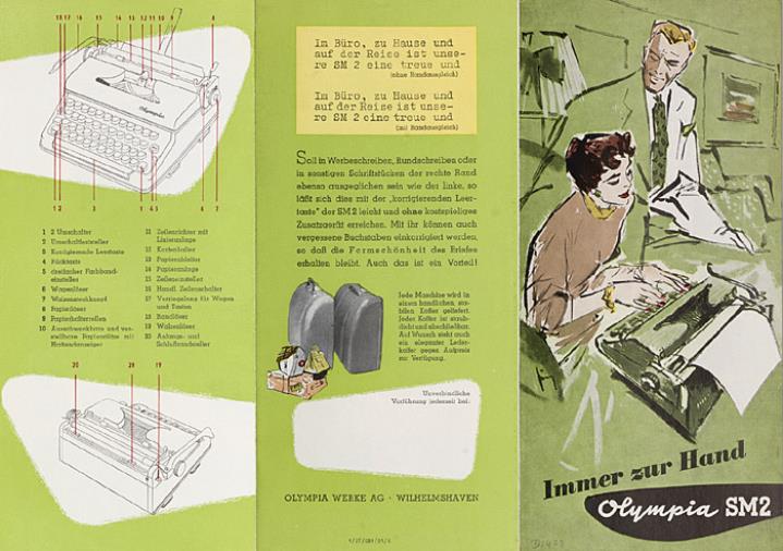 Faltprospekt für Schreibmaschine Olympia SM 2 Nr. 1/22/001/01/R