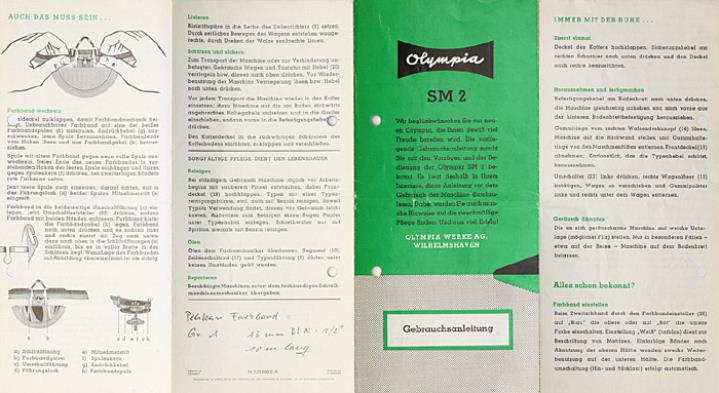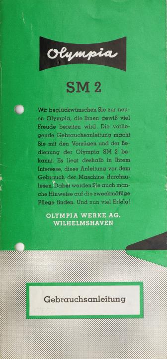 Bedienungsanleitung für Schreibmaschine Olympia SM 2 Nr. 1/31/030/01/K