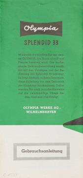 Bedienungsanleitung für Schreibmaschine Olympia Splendid 33 Nr. 1/32/020/01/R