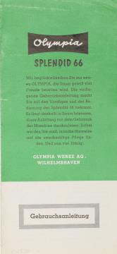 Bedienungsanleitung für Schreibmaschine Olympia Splendid 66 Nr. 1/32/021/10
