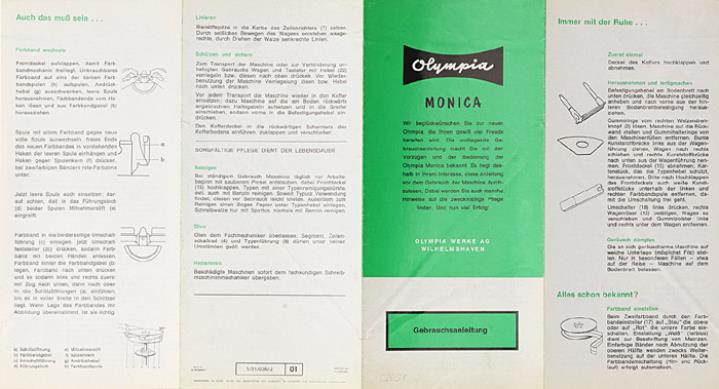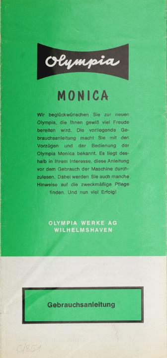 Bedienungsanleitung für Schreibmaschine Olympia Monica Nr. 1/31/036/J