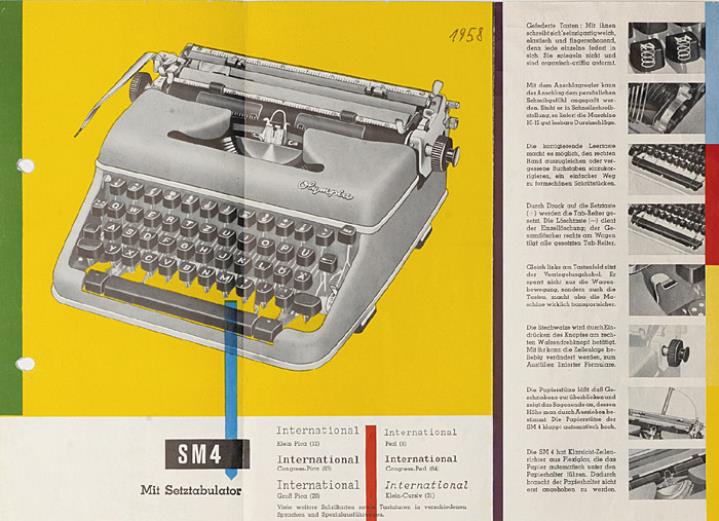 Faltprospekt für Schreibmaschine Olympia SM 4 Nr. 1/31/005/01