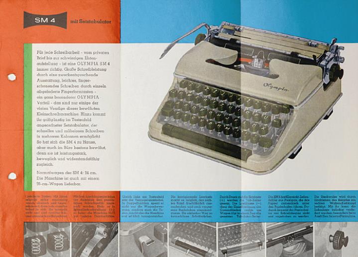 Faltprospekt für Schreibmaschine Olympia SM 4 Nr. 1/31/005/01/L