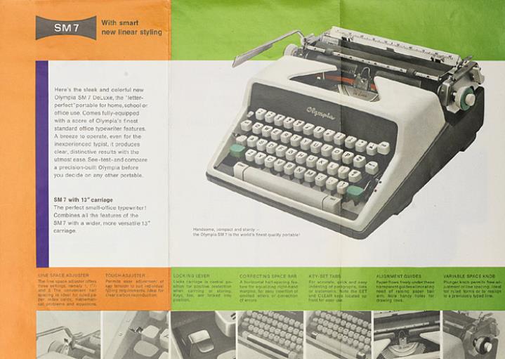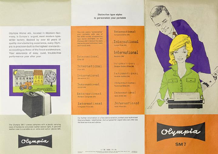 Faltprospekt für Schreibmaschine Olympia SM 7 Nr. 1/31/008/11/B