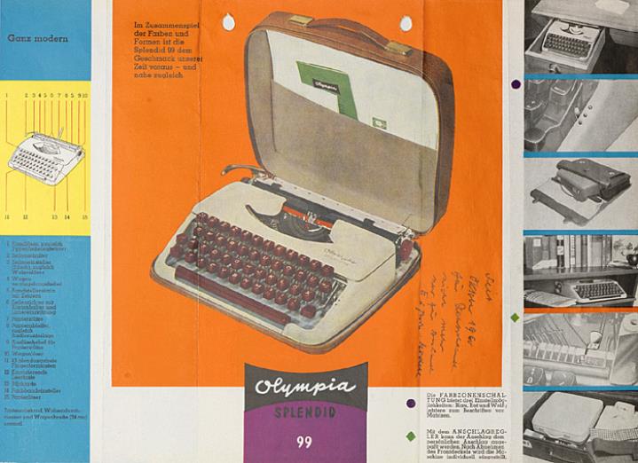 Faltprospekt für Schreibmaschine Olympia Splendid 99 Nr. 1/32/007/01
