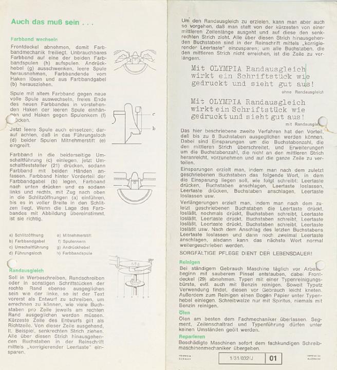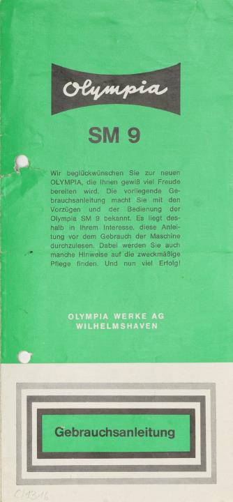 Bedienungsanleitung für Schreibmaschine Olympia SM 9 Nr. 1/31/032/J