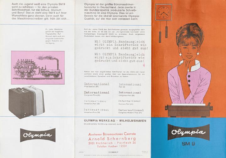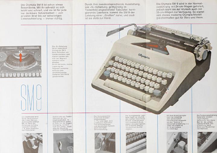 Faltprospekt für Schreibmaschine Olympia SM 9 Nr. 1/31/008/01/P