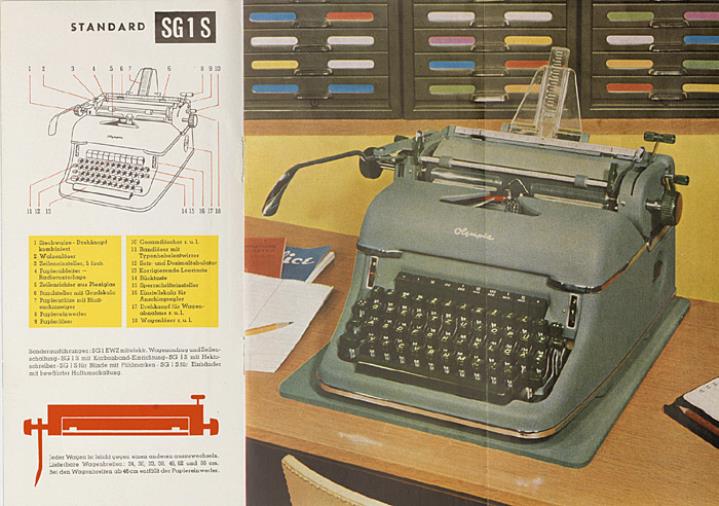 Faltprospekt für Schreibmaschine Olympia Standard SG 1 S Nr. 1/21/001/01/C