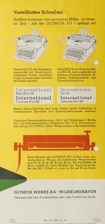 Prospekt für Schreibmaschine Olympia Standard SG 1 Nr. 1/21/003/01/B