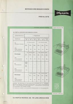 Büroschreibmaschinen Olympia Preisliste