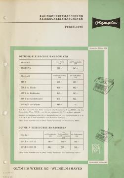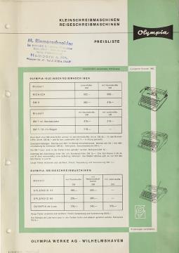 Kleinschreibmaschinen Reiseschreibmaschinen Olympia Preisliste