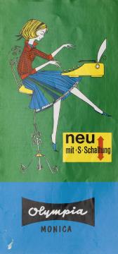 Faltprospekt für Schreibmaschine Olympia Monica neu mit S-Schaltung Nr. 1/31/009/01