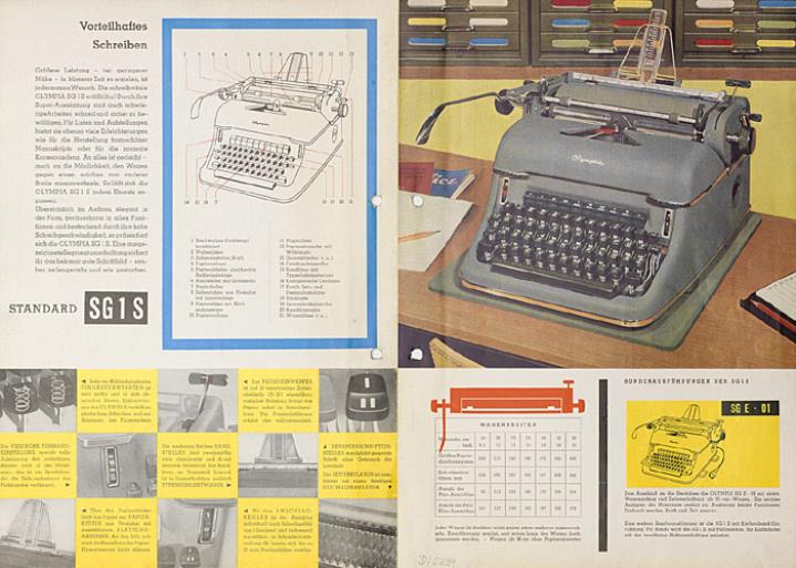 Faltprospekt für Schreibmaschine Olympia SG 1 S Nr. 1/21/002/01/J