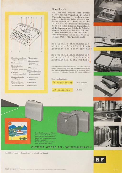 Prospekt für Schreibmaschine Olympia SF Nr. 1/32/002/01/C