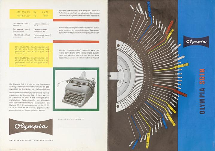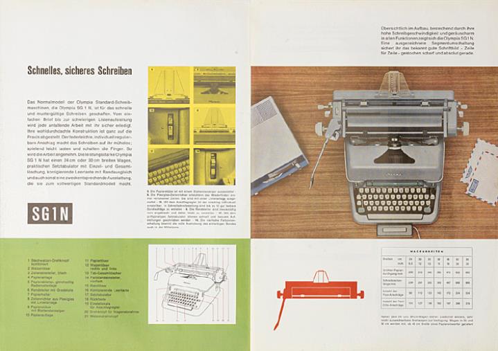 Faltprospekt für Schreibmaschine Olympia Standard SG 1 N Nr. 1/21/051/01/G