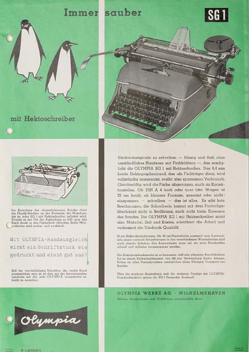 Immer sauber Olympia SG 1 mit Hektoschreiber