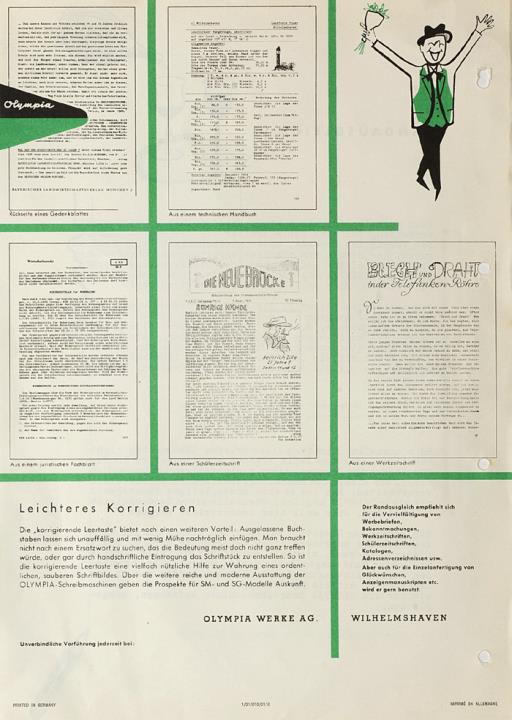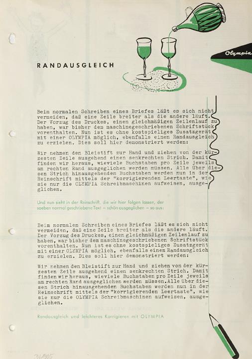 Prospekt für Schreibmaschine Olympia mit Randausgleich Nr. 1/01/010/01/G