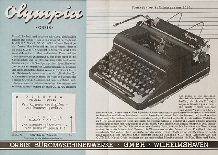 Faltprospekt für Schreibmaschine Olympia Orbis Nr. 345 WL 312 50000 1249