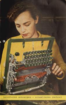 Next to literature on the history of technology, of the typewriter and the office, the Archive holds patent letters, textbooks and instruction manuals as well as historical postcards, letters, photographs and various kinds of advertising (leaflets and brochures, advertising stamps, newspaper ads, posters and signs, promotional gifts).