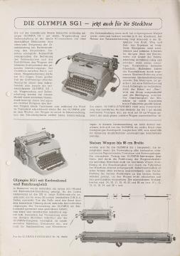 Prospekt für elektrische Schreibmaschine Olympia SG 1 aus der Olympia Rundschau Nr. 7/8, 1954/55