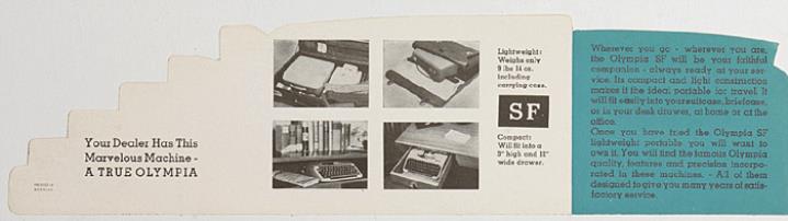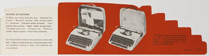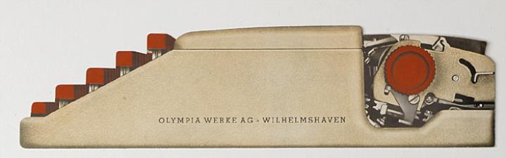 Faltprospekt in Form einer Schreibmaschine im Profil für Schreibmaschine Olympia SF Nr. 1/29/008/1