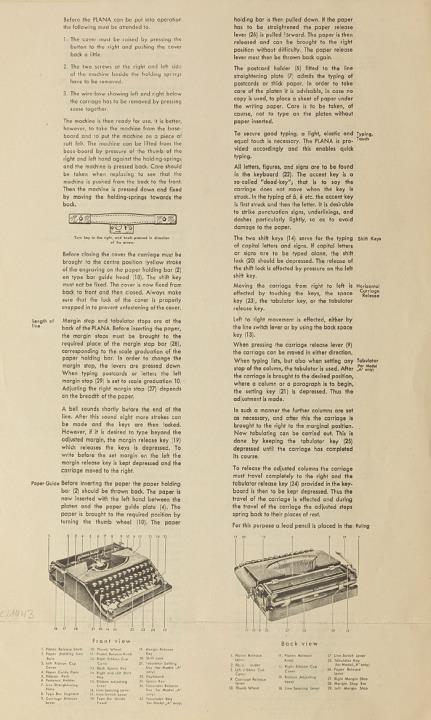 Bedienungsanleitung für Schreibmaschine Olympia Plana