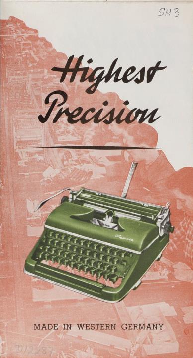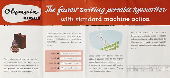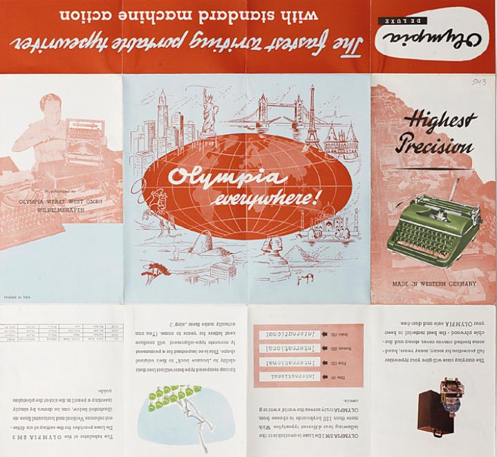 Faltprospekt für Schreibmaschine Olympia SM 3 De Luxe Made in Western Germany