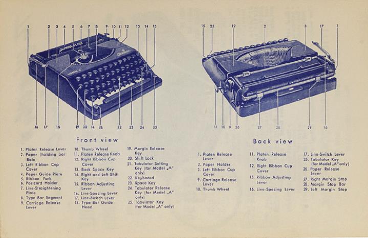 Tragbare Schreibmaschine, Reiseschreibmaschine, Typenhebel