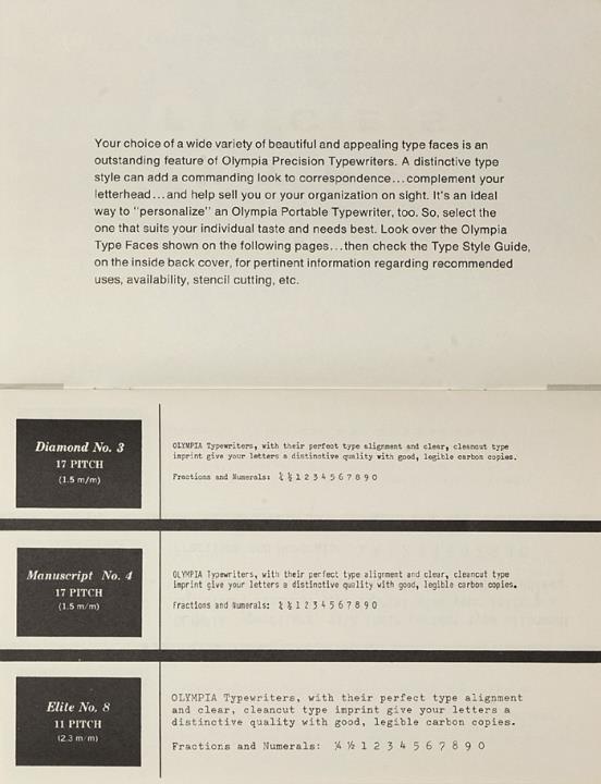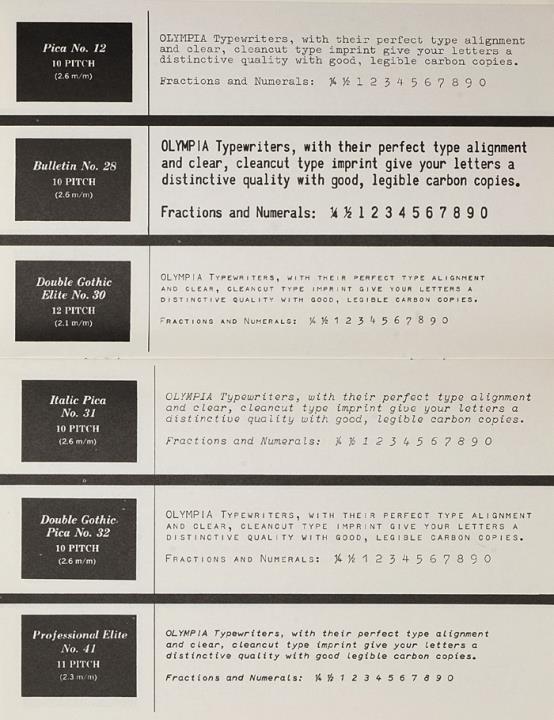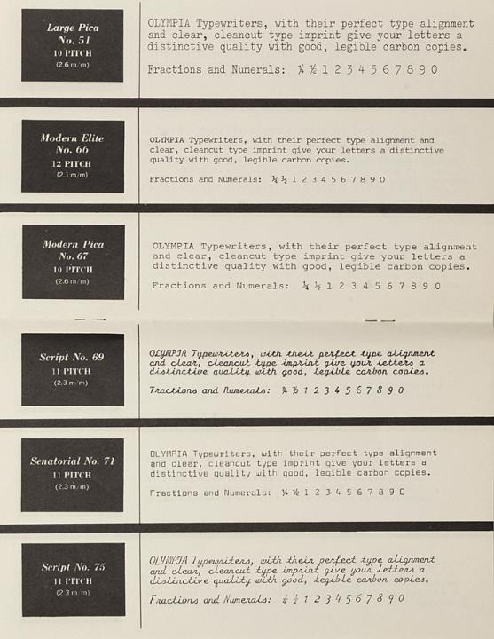 Schriftartenverzeichnis für Schreibmaschine Olympia Nr. ITC-20