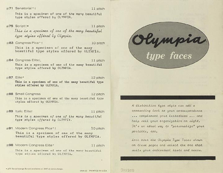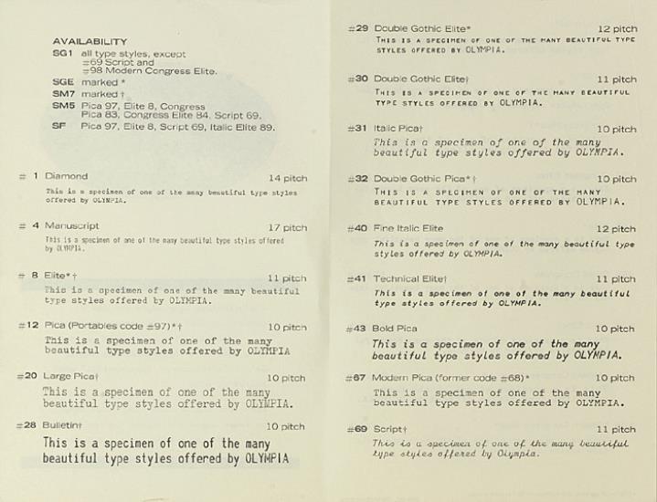 Schriftartenverzeichnis für Schreibmaschine Olympia Nr. SMA-62