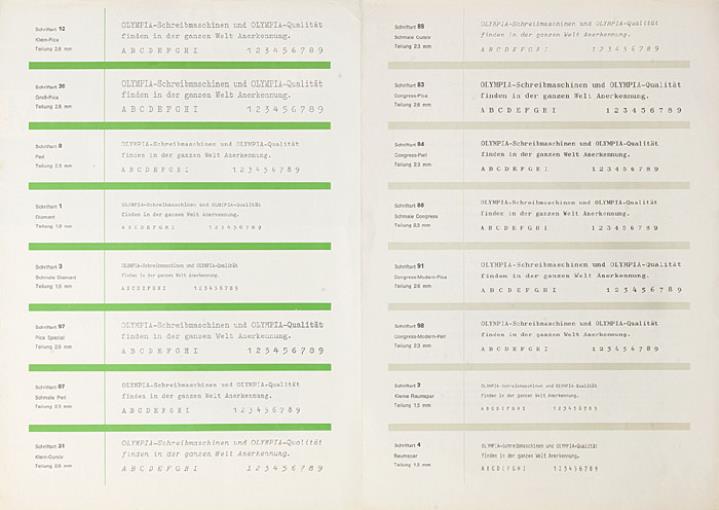 Schriftartenverzeichnis für Schreibmaschine Olympia Nr. 1/13/004/01/B - 9.63