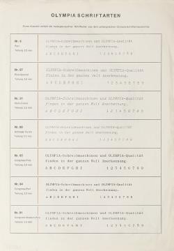 Einzelblatt mit Schriftarten für Schreibmaschine Olympia Teil eines mehrseitigen Prospektes
